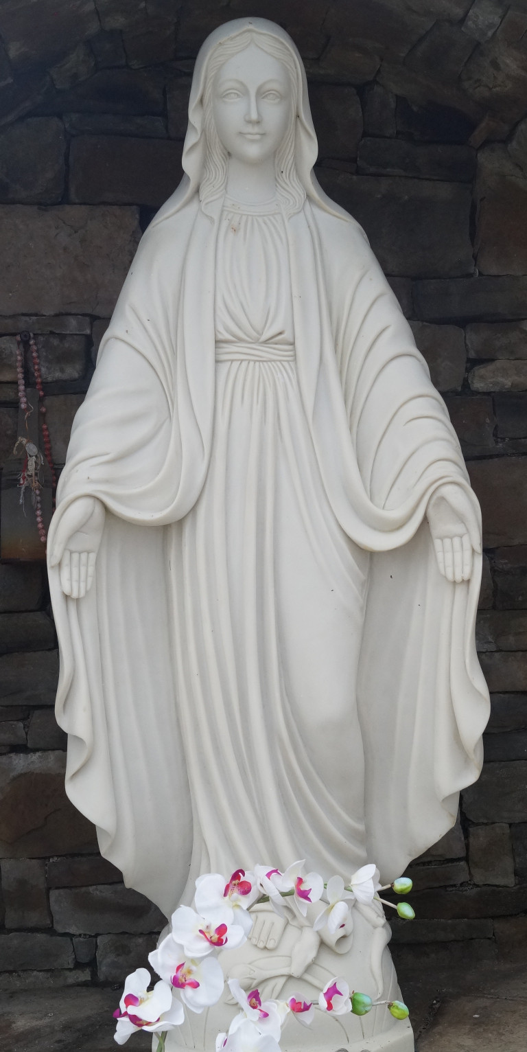 ist diese Schutzmantel-Maria an einem der Zufahrtswege. 2012 wurde das Grotto erbaut. Ausführlich