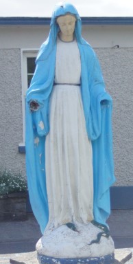 Marienstatue davor. Leider kümmert sich offenbar keiner um sie, die