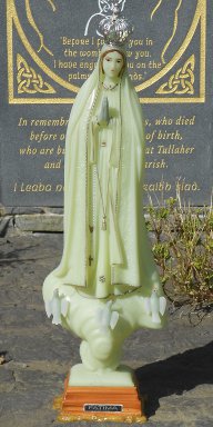 eine Nachbildung der Maria von Fatima, Spanien. Sie steht in einer 2012 errichteten Installation, die an