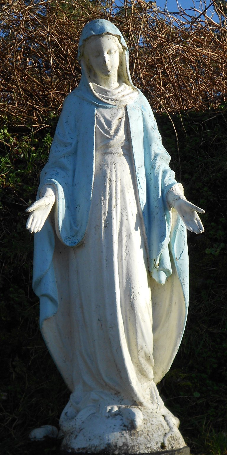 steht diese Maria direkt an der Straße. Die Farbe blättert schon so arg, daß