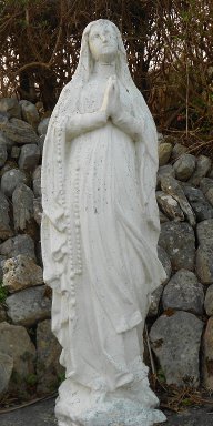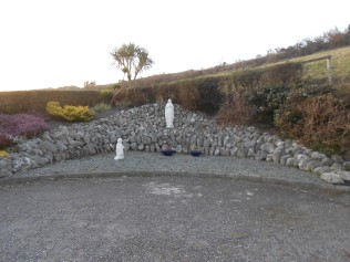 Hoffnung zur schlichten Kirche über Drombeg hinaufsteig - nur um oben eine Maria samt Bernadette