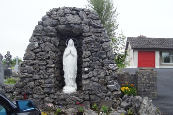 Ennis, wartet an der kleinen Kirche mit einer Mariengrotte auf. 1954 errichtet