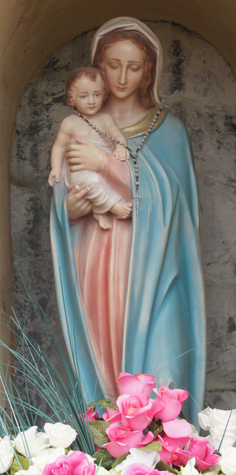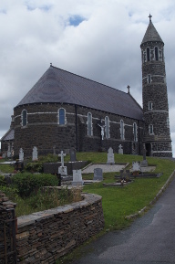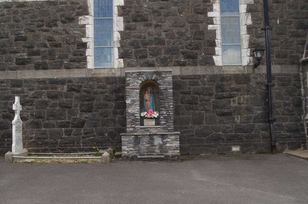 Die recht neue Kirche "Sacred Heart" hat als Glockenturm einen traditionellen Cloigtheach (von Deutschen auch gerne mal Bleistiftturm genannt) und als Maria etwas ganz Besonderes: eine eher nach Bayern