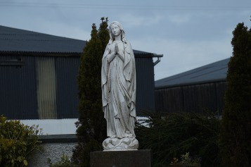 Neben der Kirche und dezent vor den Lagerhallen steht diese Marien-Statue, wieder eine