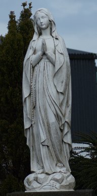 Nachbildung der Madonna von Lourdes. Allerdings ist sie unangemalt, ohne Grotto und ohne
