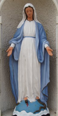 nicht. Diese Madonna steht am Anfang der großen Freitreppe hinauf zur Kirche und wird von