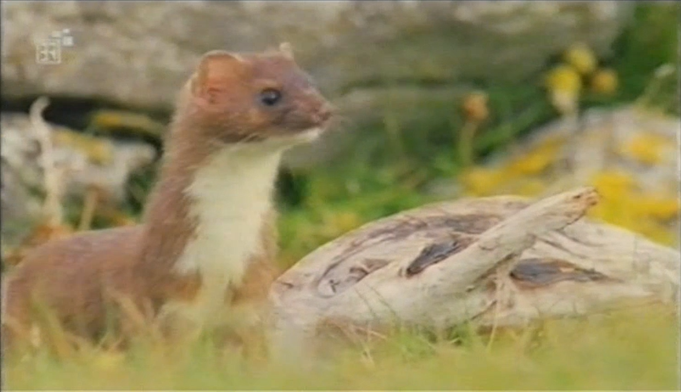 Ein Hermelin auf Jagd in den Uferzonen Irlands.