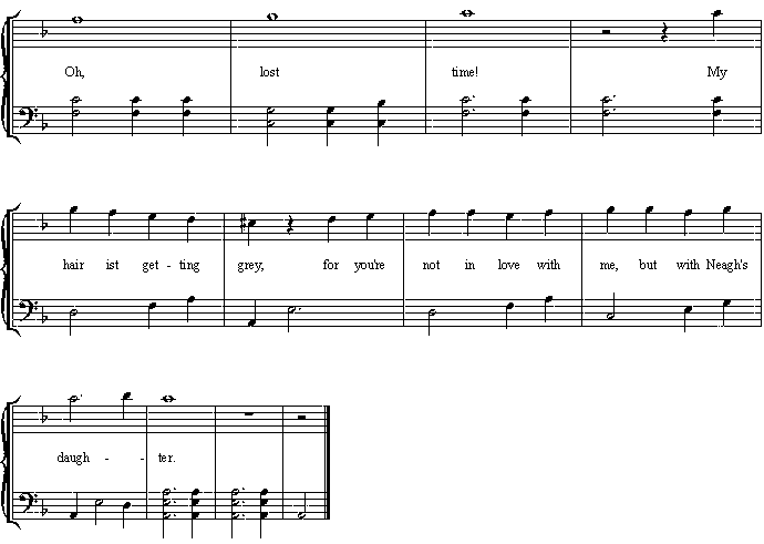 Im Norden Irlands liegt ein großer Binnensee, "Lough Neagh". ( Lough, gesprochen "Loch", heißt ganz einfach "See"). Der Sage nach wohnt auf seinem Grund das Nixenvolk. Die Zeit dort vergeht viel langsamer als die unsere.