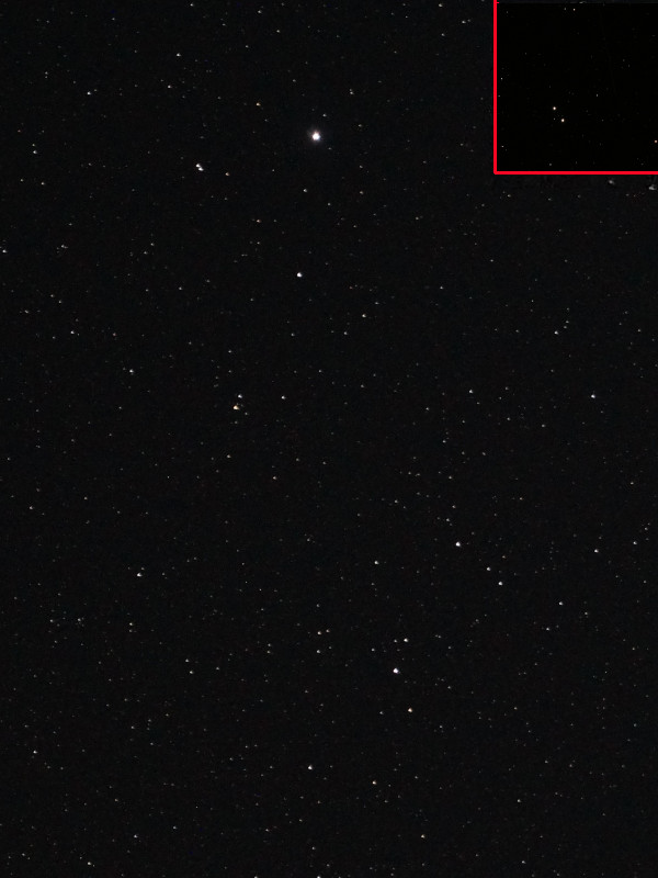 Die folgende Aufnahme entstand am 29.07.2024 um 23:13 Uhr MESZ. Die Sony α 58, nachgeführt mit einer "Star Adventurer" von Skywatcher, war mit einem 50-mm-Objektiv ausgerüstet und belichtete bei ISO 1600 20 Sekunden lang bei einer Blendenzahl von F/5,6. Leider macht sich die Verzeichnung des Objektives an den Sternabbildungen deutlich bemerkbar.