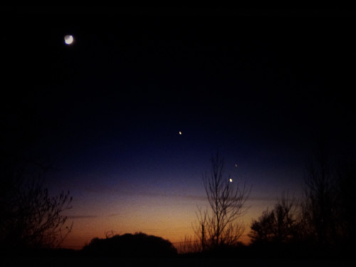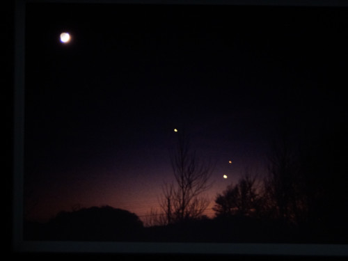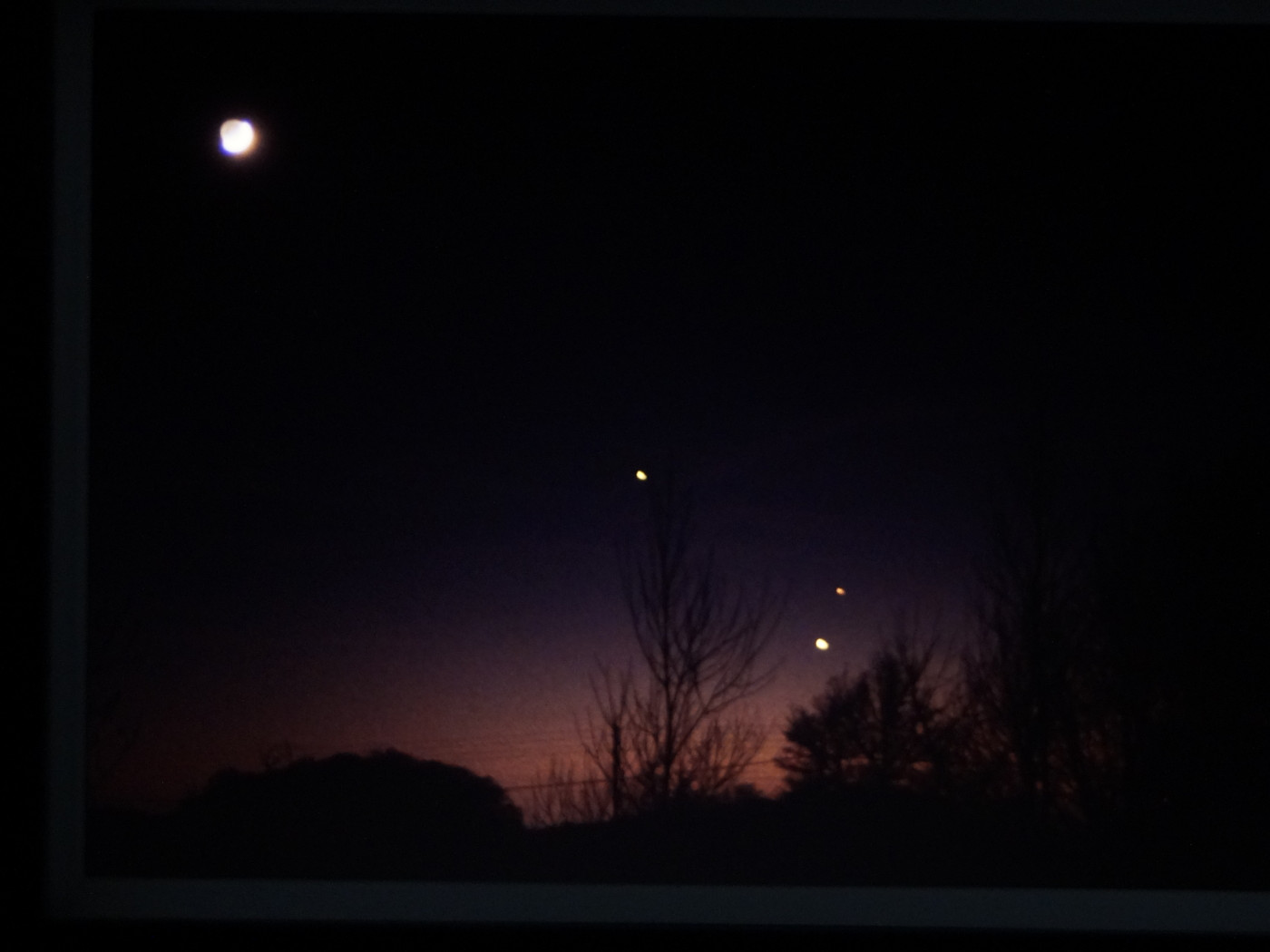 den Mond, Saturn, Mars und Jupiter zeigen. Aufnahmeort war die Wiese südwestlich von Alverskirchen,
