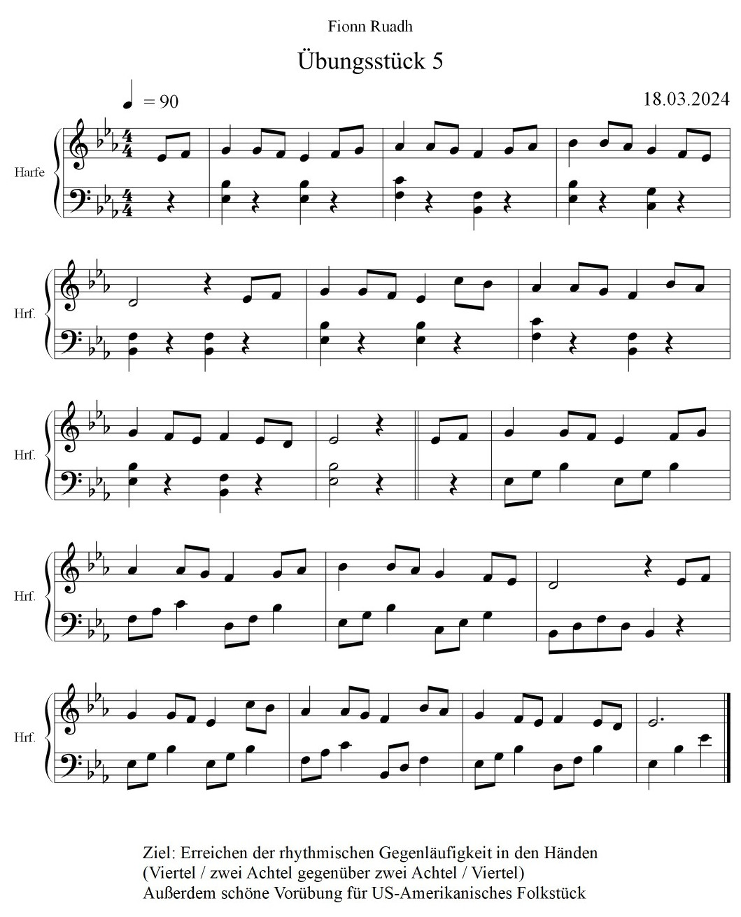Praktisch für das Zusammenspiel ist, daß die Quinten mit den längeren Viertelnoten der Melodie zusammen gespielt werden.