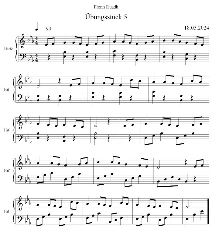 Beginne dann, mit Hilfe der obigen Anmerkungen die Melodie zu spielen - in Es-Dur, also alle Klappen runter auf der Es-Dur-Harfe.